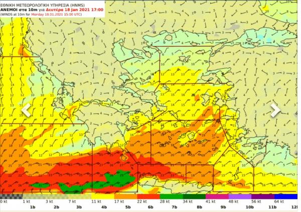 3. Τους θυελλώδεις ανέμους Ανατολικών διευθύνσεων εντάσεως 7 έως 8 μποφόρ, που θα επικρατήσουν στα νότια πελάγη τη Δευτέρα.