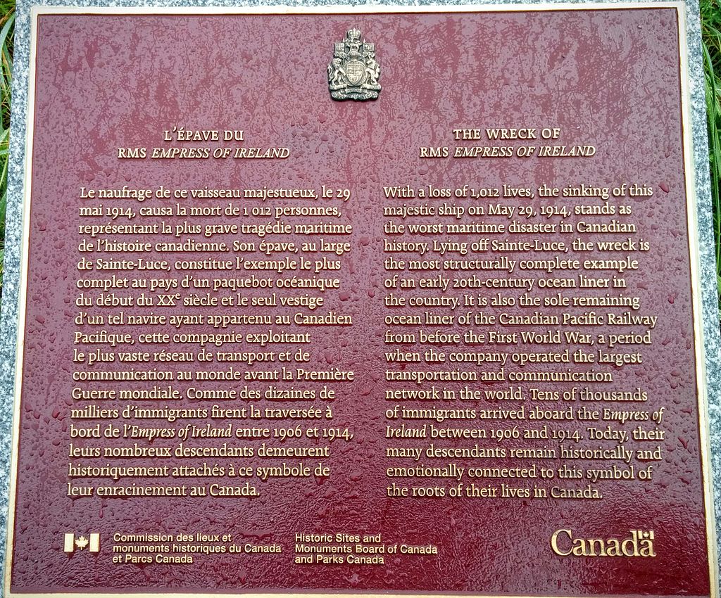 Στις 29 Μαΐου 1914 συνέβη η μεγαλύτερη ναυτική τραγωδία του Καναδά όταν το υπερωκεάνιο Empress of Ireland βυθίστηκε παρασύροντας στο θάνατο πάνω από χίλιους επιβάτες μετά από σύγκρουση με Νορβηγικό φορτηγό στον ποταμό Άγιο Λαυρέντιο. Στο δυστύχημα βασικό ρόλο έπαιξε η πυκνή ομίχλη.